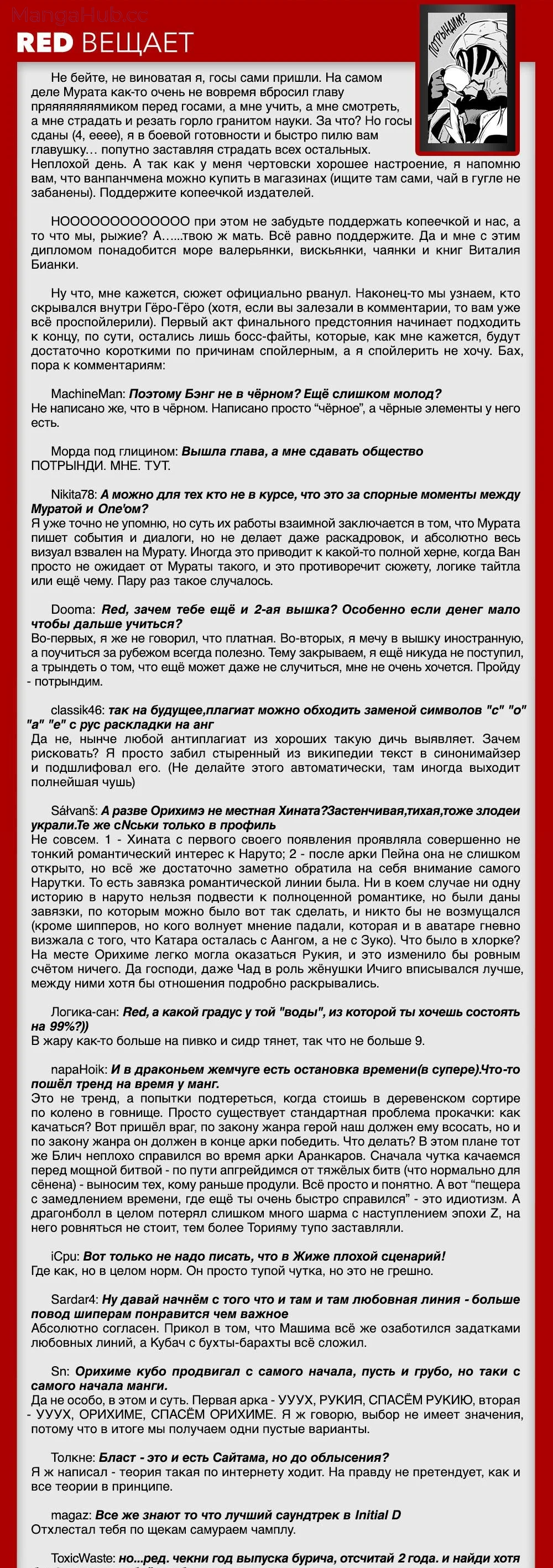 Оскорблять пользователей сайта или любого ресурса (включая страницы социальных сетей) под управлением Мангахаба.