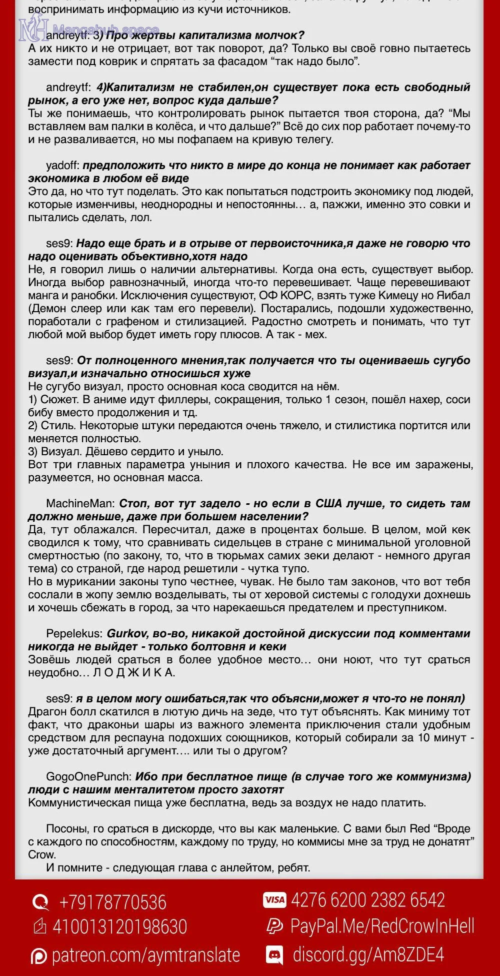 Оскорблять пользователей сайта или любого ресурса (включая страницы социальных сетей) под управлением Мангахаба.