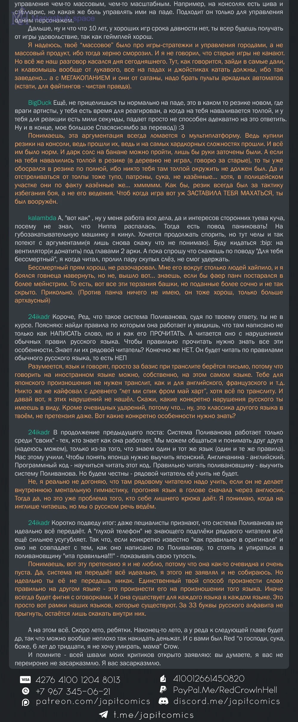 Оскорблять пользователей сайта или любого ресурса (включая страницы социальных сетей) под управлением Мангахаба.